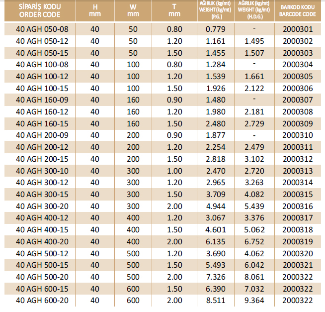 * Kablo Kanal boyları standart L:3000 mm üretilmektedir. Toplu miktarlarda özel boy üretimide yapılabilmektedir. /