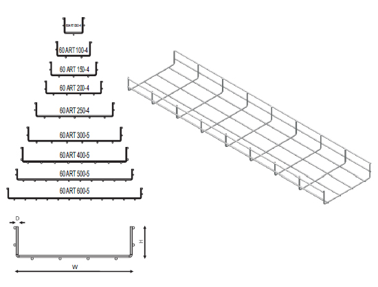 H: 60 BRAIDED WIRE CABLE TRAYS