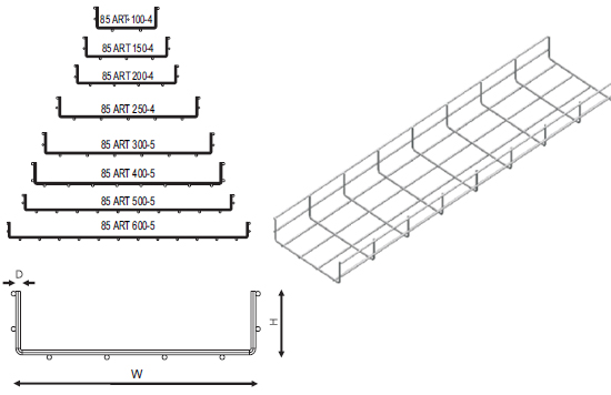 H: 85 BRAIDED WIRE CABLE TRAYS