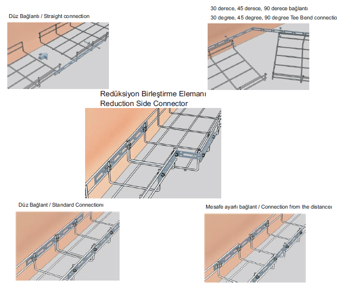 * Wire Mesh Cable Tray as standard TS 149 Electro Galvanized ((EG)) is produced. / Wiremesh produce as cable trays 149 are Electro Galvanized ((EG)).