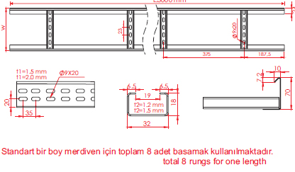 * Standard LAN cable ladder length: 3000 mm are produced. Special size can be made in bulk quantities in production. / Cable ladders are produced with standard length L: 3000mm length as well as we can produce special for your big quantities.